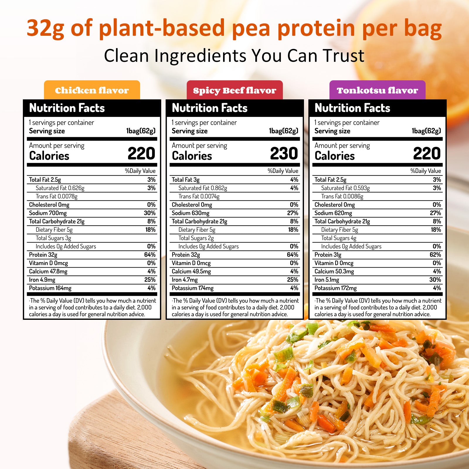 High Protein Instant Ramen Variety Pack, 6 Pack Non Fried Ramen Broth(Chicken, Beef, Pork Tonkotsu)